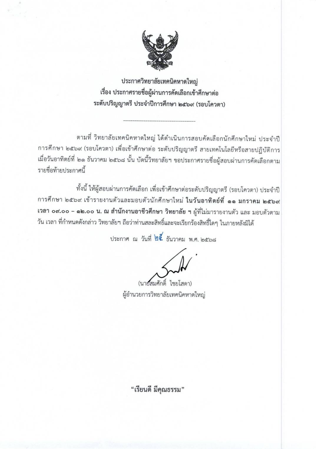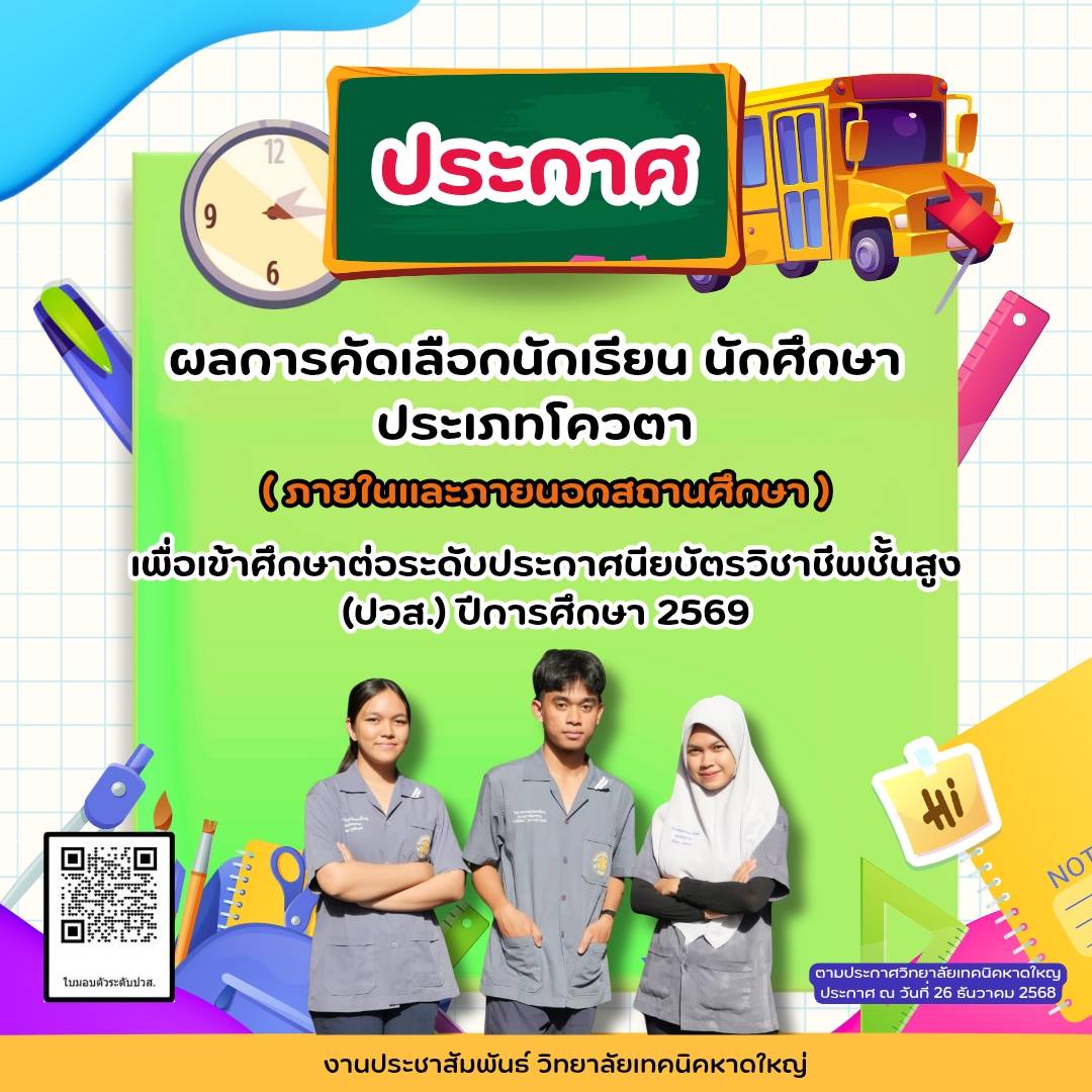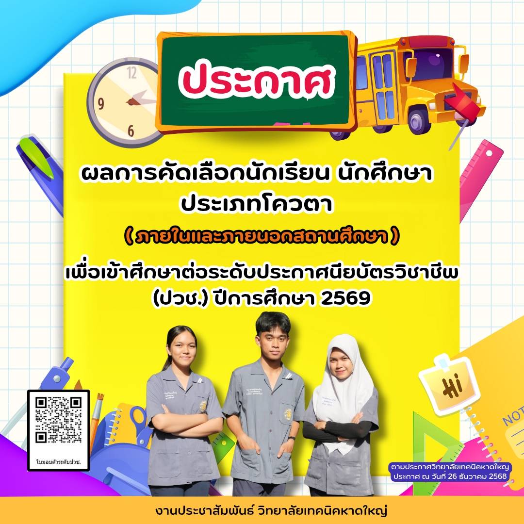 วิทยาลัยเทคนิคหาดใหญ่ รับสมัครนักเรียน นักศึกษาใหม่ ปีการศึกษา 2569
