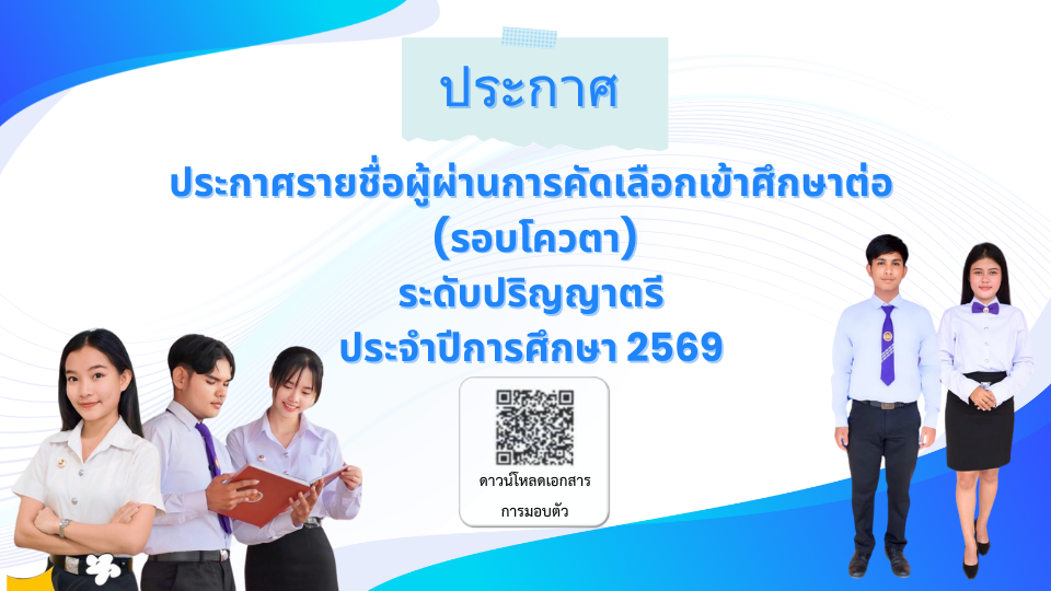 ประกาศรายชื่อผู้ผ่านการคัดเลือกเข้าศึกษาต่อ ระดับปริญญาตรี ประจำปีการศึกษา 2569 (รอบโควตา)
