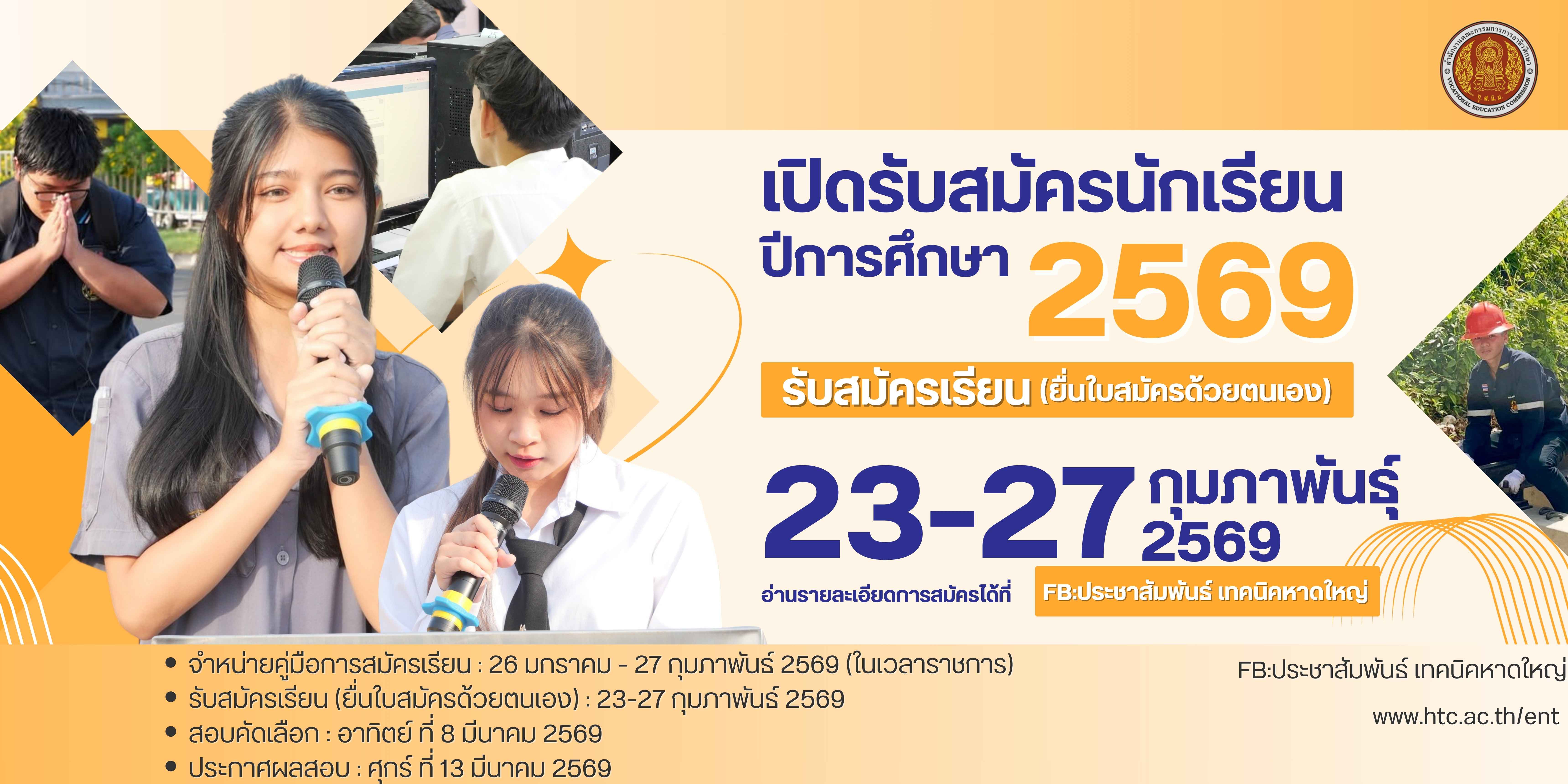 วิทยาลัยเทคนิคหาดใหญ่ รับสมัครนักเรียน นักศึกษาใหม่ ปีการศึกษา 2569